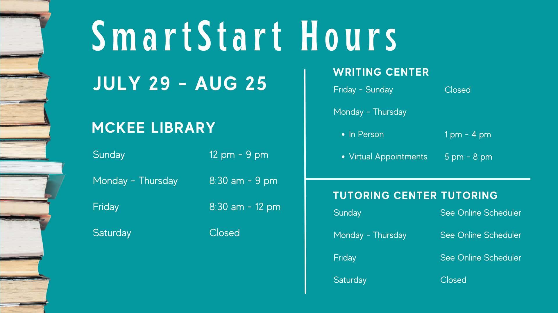 McKee Library’s SmartStart hours (p. 3)