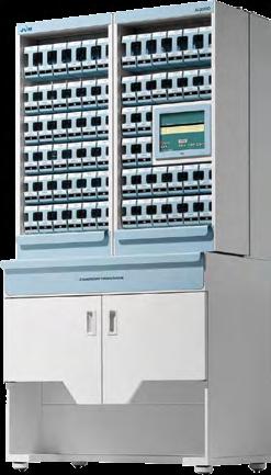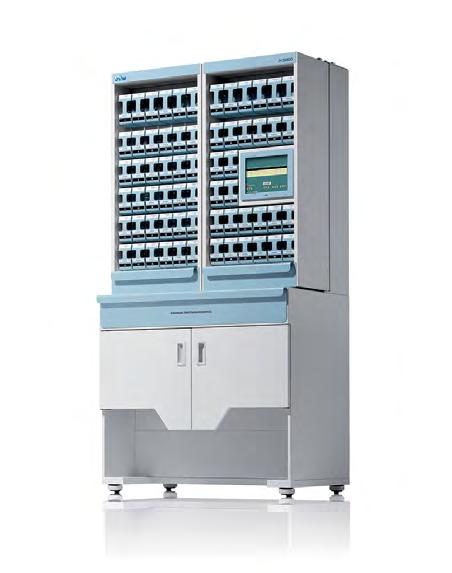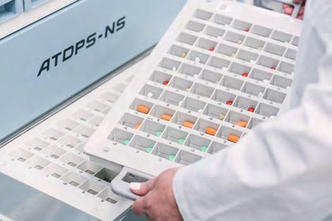 • Special Tablet System (STS) trays, universal canisters, optional accessories, allow for uninterrupted packaging of non-canister medication and partial pills.