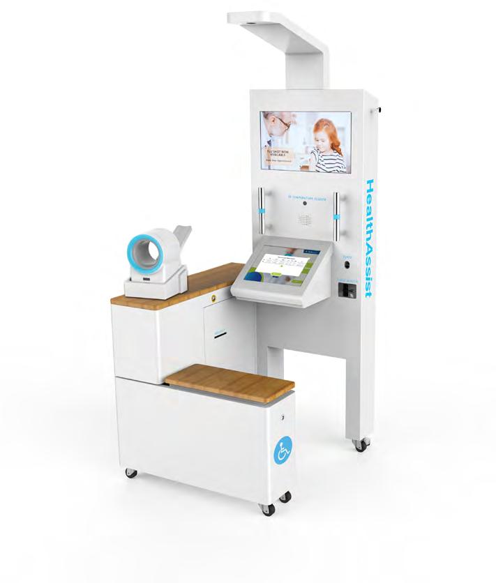 • Patients interact with the kiosk through a private 15" screen