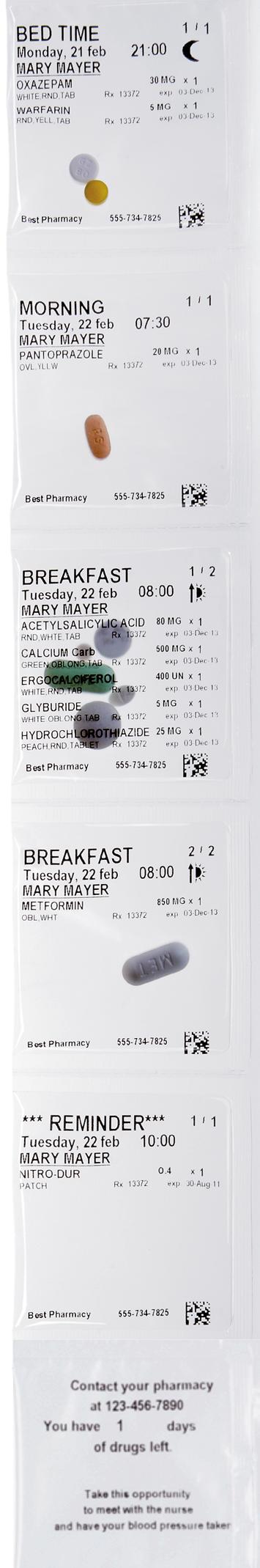 Can be used, for example, to remind patients of when to take non-oral solid medication or number of days left to renewal