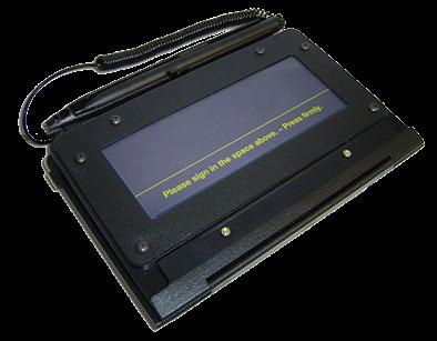A small, biometric electronic signature pad with a signature capture touchpad, designed to be both space and costefficient. Includes a tethered pen.