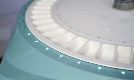 This semi-automated rotary-type device packages up to 67 pouches per minute, reducing manual handling. LED light guided indicators guide every step to minimize errors, and customizable print layouts including the patient’s name, date, time of administration and detailed medication descriptions (shape, colour, etc.) make patient information clear and easy to read.
