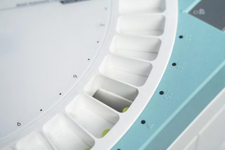 • LED light-guided indicators provide visual cues to minimize errors and ensure the right medication is placed in the correct location.