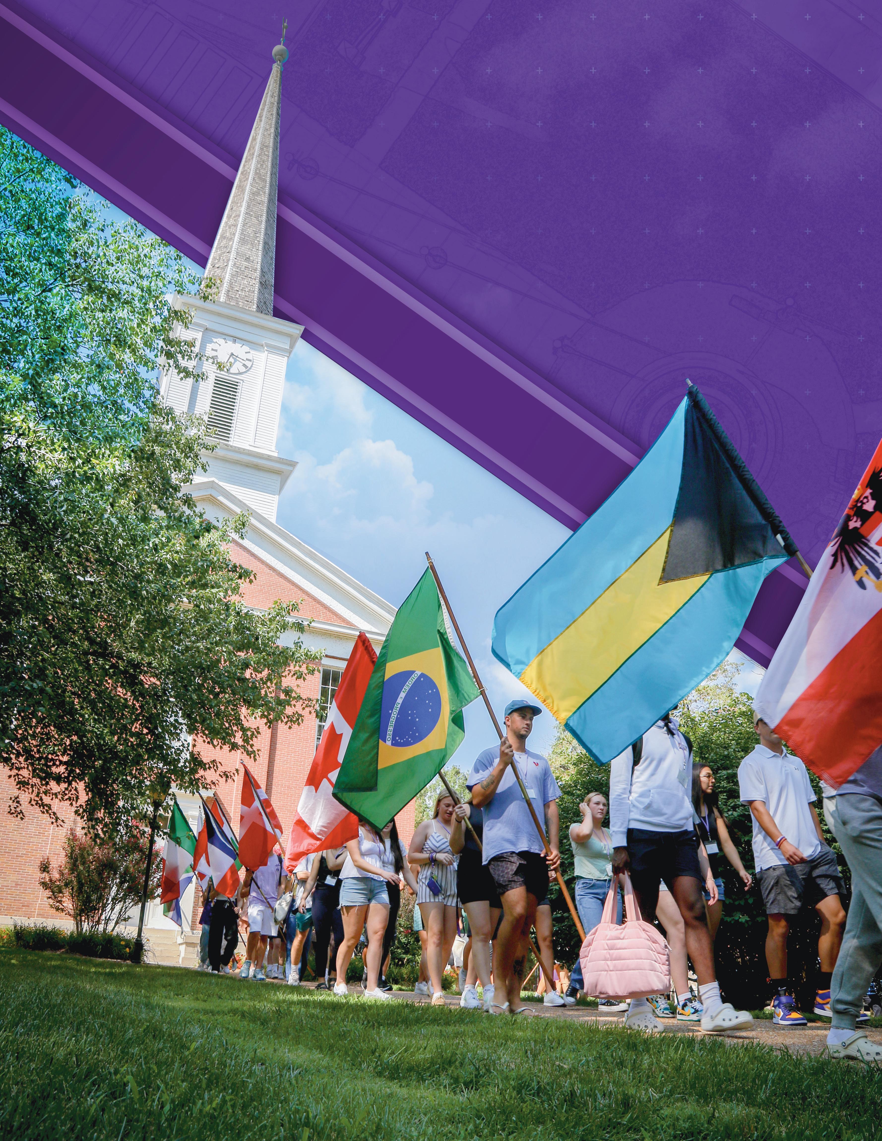 International students from around the world proudly carry their homelands’ flags as they make their way down the front lawn for McKendree’s 2023 Convocation ceremony on Aug. 16. Read about the Class of 2027 on pg. 16!