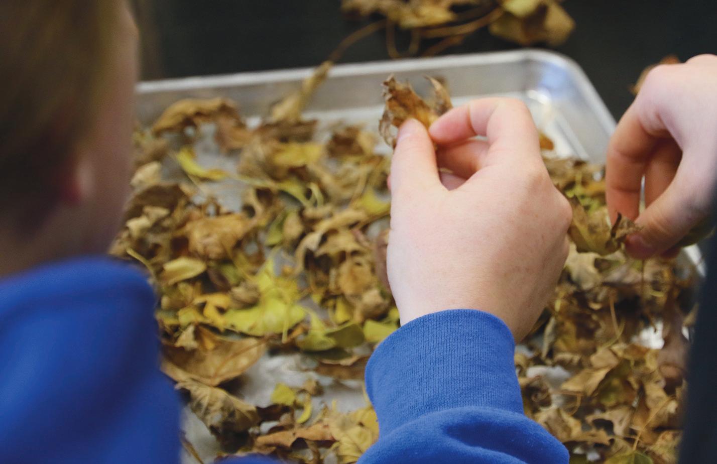 Students built leaf traps and placed them under the towering trees of the front lawn to collect leaves and other autumnal debris over the course of a few weeks. Once most of the leaves had fallen, the students retrieved their traps and, after two days, analyzed their findings and recorded their data in their lab notebooks, including the geographic location, site, date and time, trap number, and the identity of all the trees overhanging the traps. They then estimated how much nitrogen would be lost from areas on campus if the leaves were raked and removed and also calculated the economic costs of replacing any lost nitrogen with a chemical fertilizer to maintain normal growth.