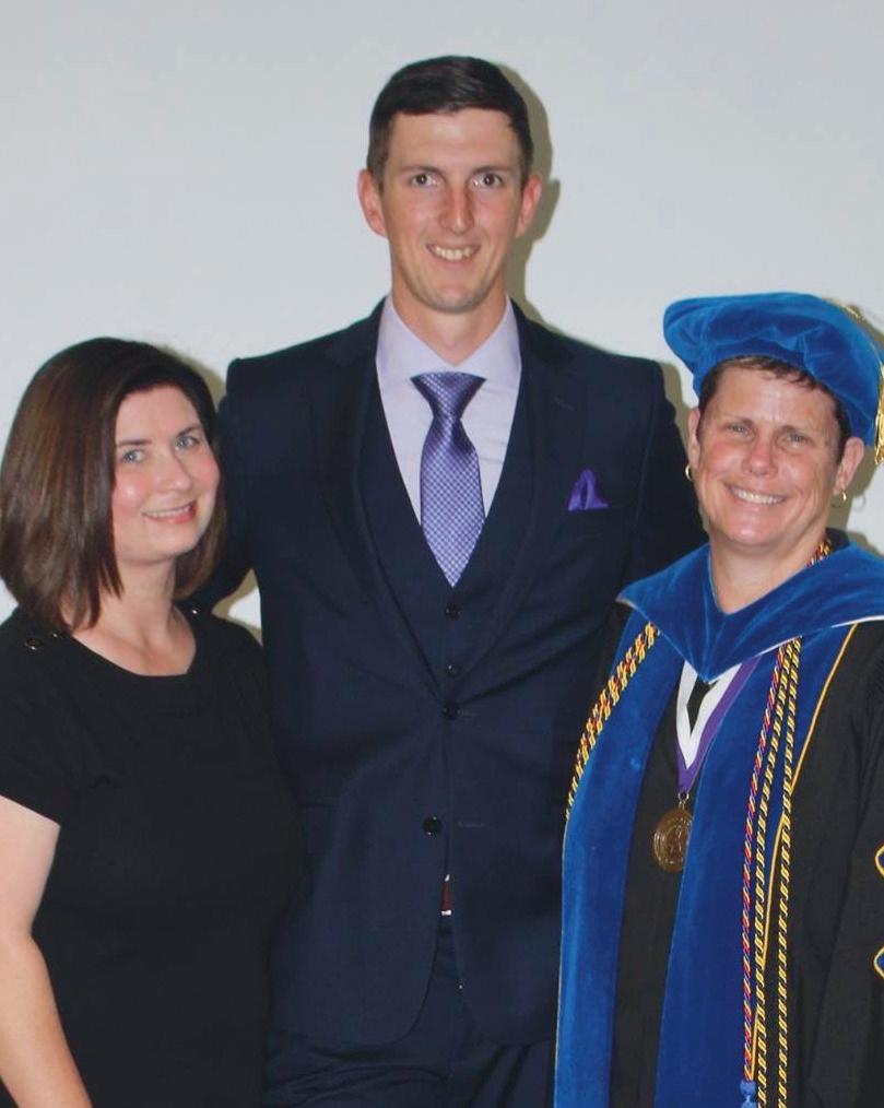 His inspiring messages didn’t stop there. Major General Bartrum then took to the stage to speak as part of the university’s annual Wayne E. Lanter Lecture Series. Flanked by two moderators – Sara (Trask) Frank ’05, associate professor of communication, and Elma Oijens, a sophomore from Sweden and member of McKendree’s soccer team and Honors Program – the general looked out on the audience and relayed messages of strength, integrity, and perseverance during the hour-long program.
