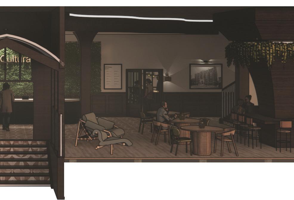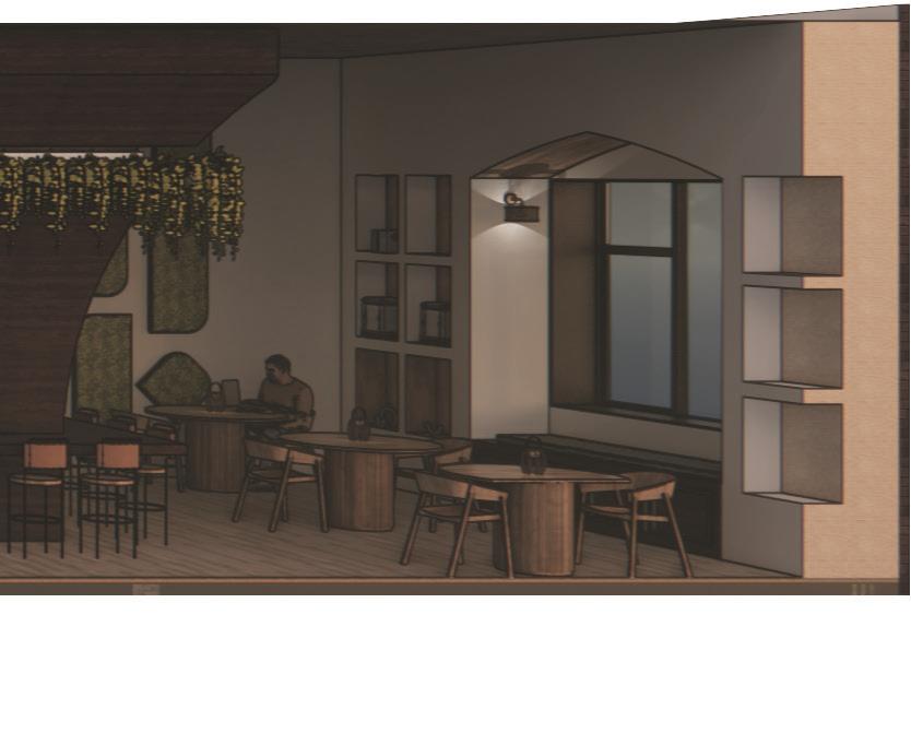 The Coffee to Cocktails project transformed a vintage building into a space that transitions from a cozy coffee shop during the day to a comfortable and charming cocktail bar at night. The project focused on creating an inviting atmosphere through warm wood tones, comfortable seating, and flexible lighting. Large windows allow natural light to flood the space during the day, while sheer curtains soften the light. As evening sets in, warm, amber-toned lighting fixtures create a cozy ambiance, and a dimmer switch allows the lighting to be adjusted to match the mood. The result is a versatile and welcoming space that makes people feel at home and comfortable, whether they’re looking for a cozy spot to work or a relaxing place to enjoy cocktails. This space was worked on for a total of six weeks to transform this space.
