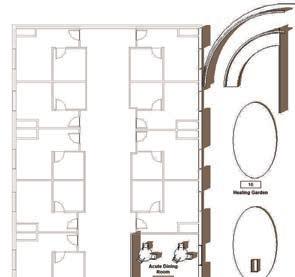 Unique techniques such as, lights on in use patient rooms, helps support the staff and visually show active rooms. Consistency in the rooms was important for nursesease of use. Lastly promotion daylight when possible serves a connection for patients and staff to feel connection to nature.