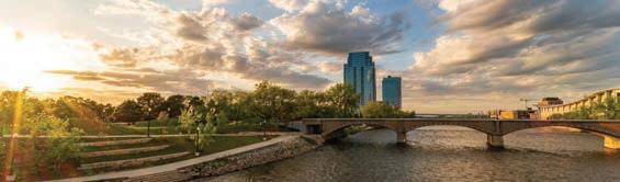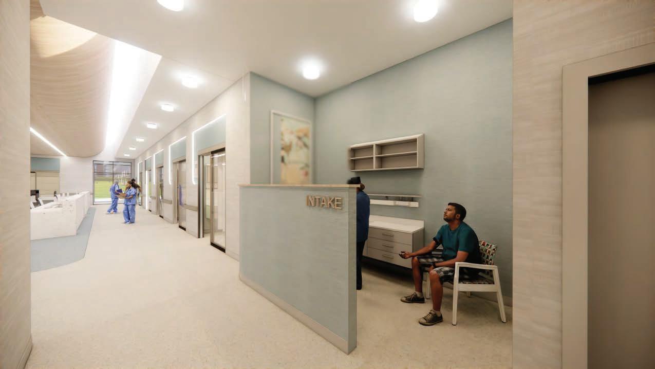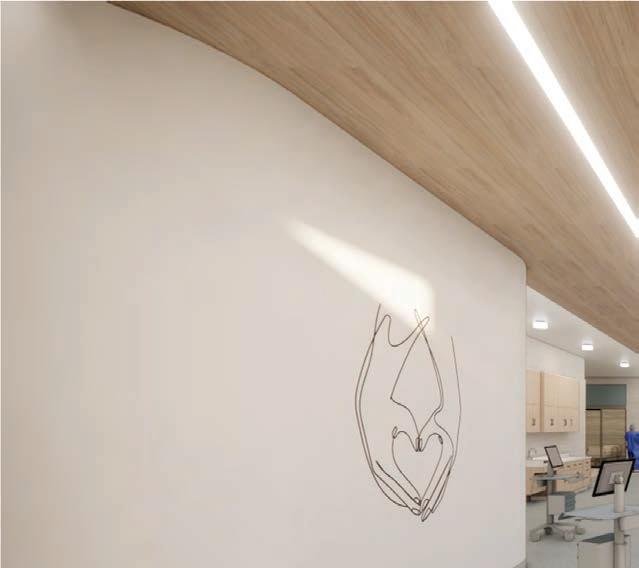 The Grand River Surgical Institute is a cardiovascular surgical outpatient center designed to promote healing and well-being through empathetic, innovative design. Located off the Beltline and Bradford Street, the facility takes inspiration from the nearby Grand River, using its natural curves to shape pathways that mimic walking along a river. This approach fosters calm and direction while supporting the needs of patients, visitors, and staff with functional and welcoming spaces.