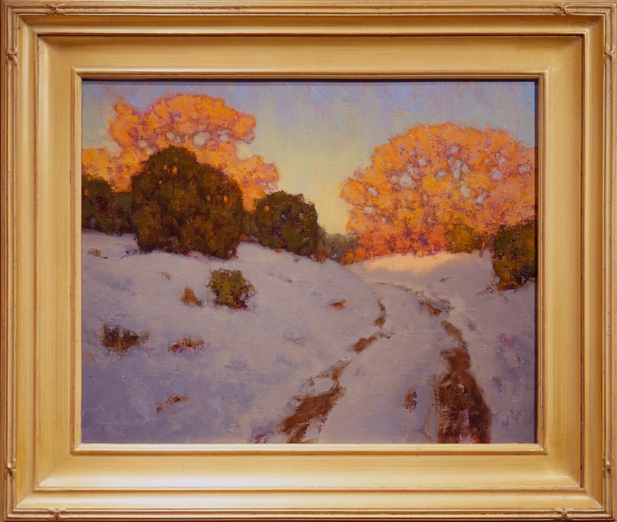 Bright Winter Morning 32" x 44" • Oil End of the Day Haystack Through the Block 4” x 5” • Oil