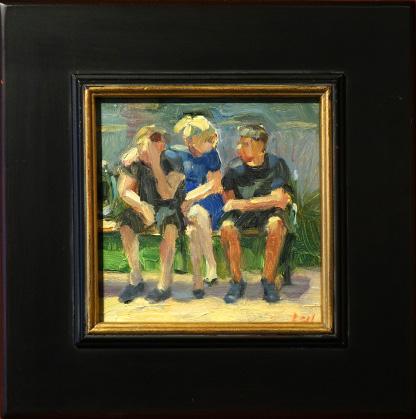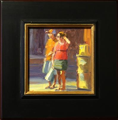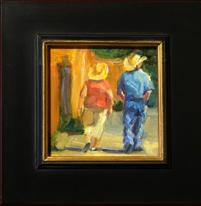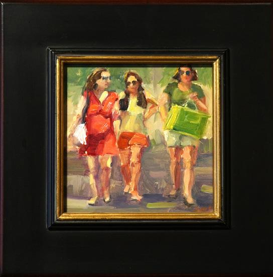 Crossing, Sisters, Siblings, Family Vacation, Indian Market, All Hats, On the Plazza, Pasqual’s 6” x 6” • Oil