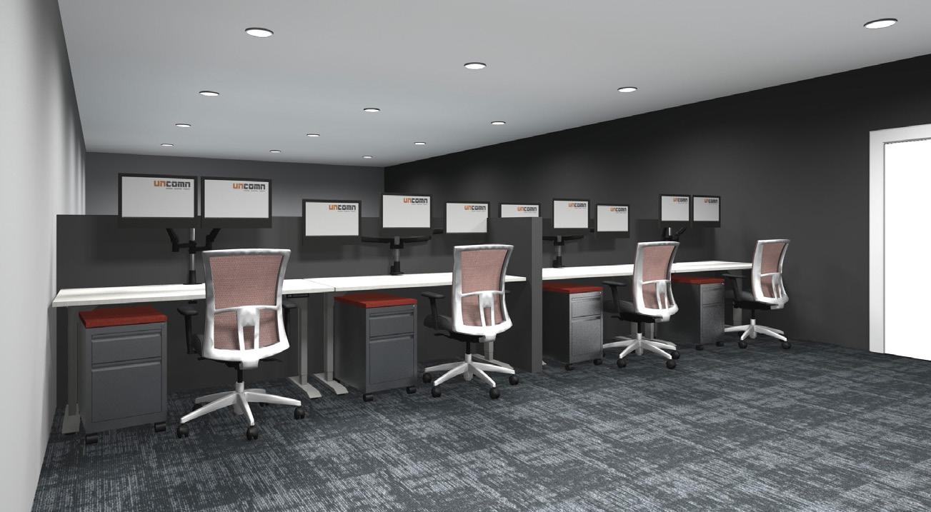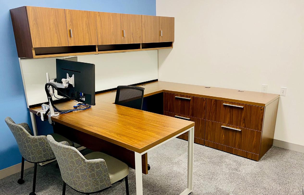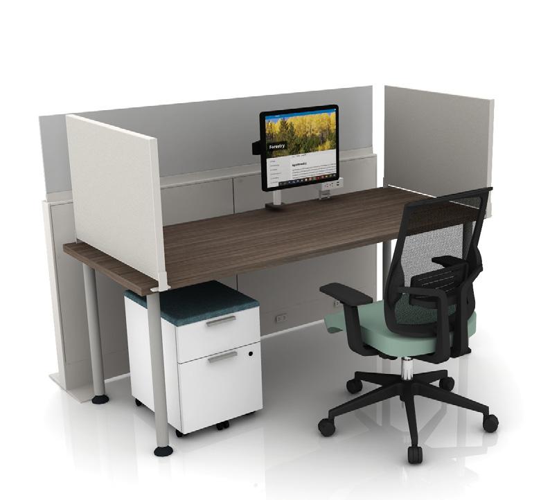 Each workstation was altered after the bidawardtorefinepanelheights,storage components,anddesktopaccessories.Final typicalswerereachedafterthethridround ofrevisions.Furniturerenderingswere providedforclientsign-off.