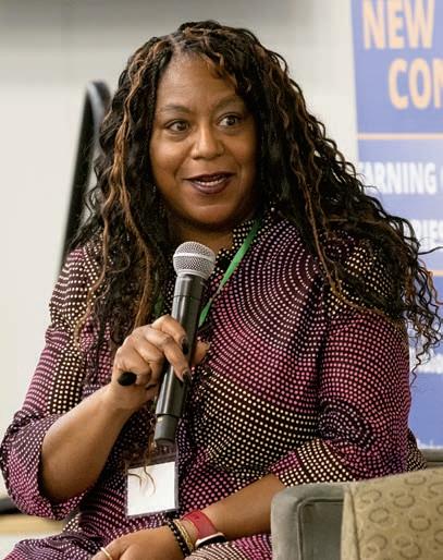 Immediate right: Shay Stewart-Bouley, an antiracism speaker, was moderator at the Black New England Conference. Speakers included Lynae Vanee, Shannon LaNier, Antonio Saunders, Cheyney McKnight, Ronelle Tshiela and Ebony Curry.