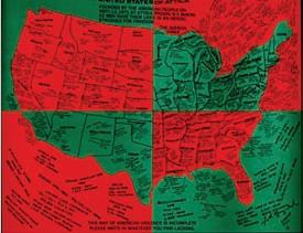 Faith Ringgold, “United States of Attica,” 1971, offset photolithograph printed in green, red, blue and black on white wove paper. Gift of the artist and ACA Galleries, New York; 2012-23.
