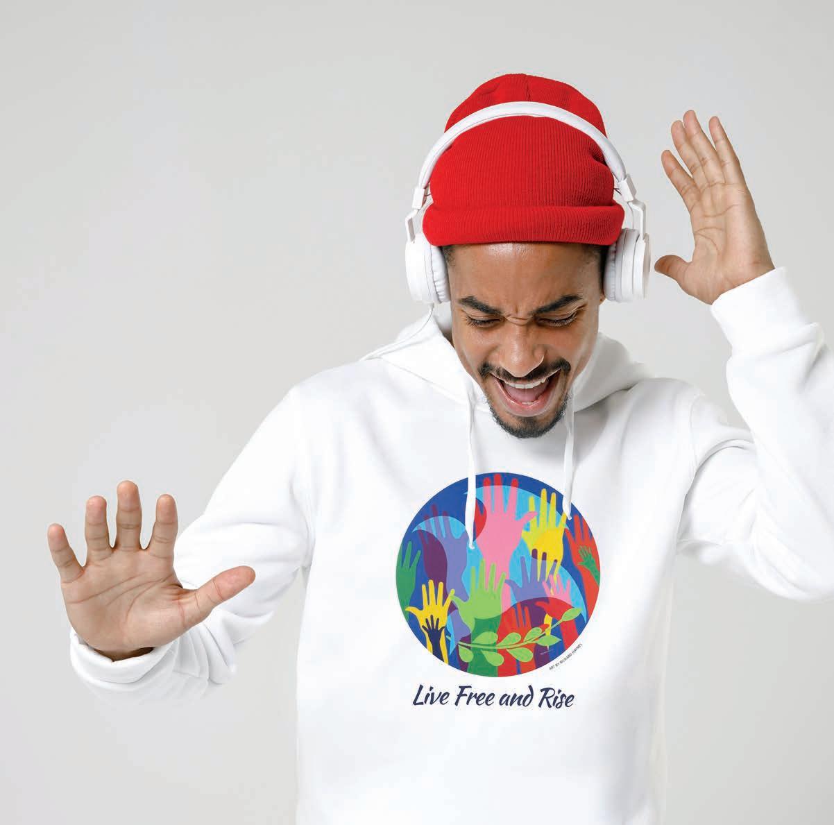 To illustrate the mission of 603 Diversity, Seacoast artist Richard Haynes has provided one of his recent designs to accompany our motto “Live Free and Rise.” We are selling T-shirts and other merchandise featuring Haynes’ design, or a design created by art student Chloe Paradis, to benefit the Manchester Chapter of the NAACP.
