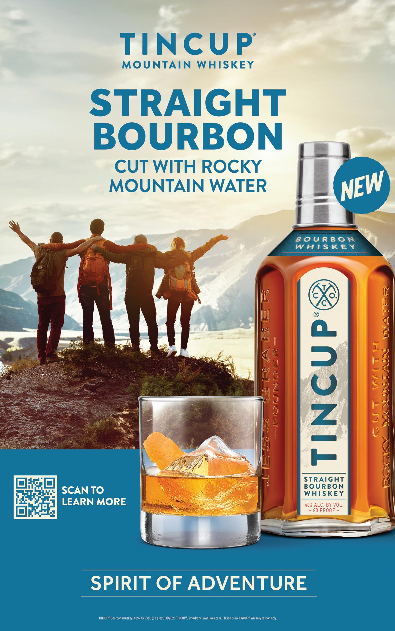 Straight bourbon cut with Rocky Mountain water, TINCUP Bourbon is sweet and smooth with a clean finish. Pop off its signature tin cup cap and enjoy wherever adventure takes you, no glassware needed. The caramel spirit has aromas of vanilla cream and worn leather, with notes of dried orange and rye spice on a smooth finish.