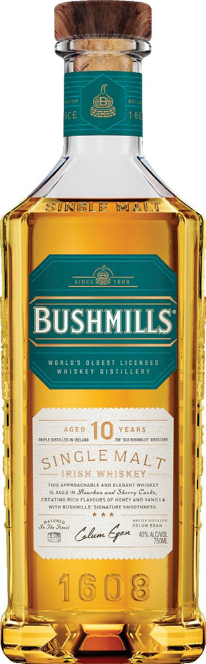 A triple-distilled, single-malt whiskey combined with an aromatic, lighter grain Irish whiskey, aged at least 3 years in Kentucky bourbon barrels and Spanish Oloroso sherry casks This is the highest-quality blended Irish whiskey from Ireland's oldest whiskey distillery Code 015776