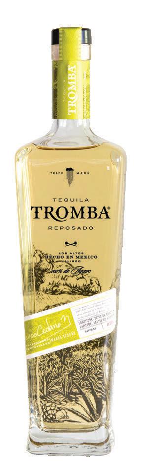 Tequila Tromba Reposado is made from 7-to-12-year-old blue weber agave harvested from the Los Altos region of Mexico. After its second distillation, the tequila is aged six months in white oak casks previously used to age American whiskey. It is bottled at 40% ABV.