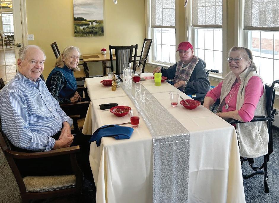 community’s many off-site trips and music program, and enjoys regular meals in the dining room.