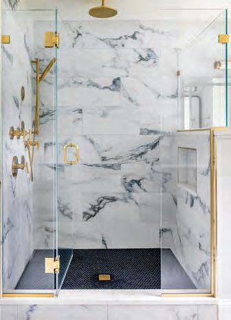 bringing in aluminum studio trusses that he framed to form living walls of Boston ivy and other dense foliage. Plantings include ostrich fern, Solomon’s seal and oak-leaf hydrangeas of the Snow Queen variety, which produce huge 18-inch flower heads and leaves measuring twofeet across. “It’s his own private world,” says Brewer. “An outdoor man cave.”