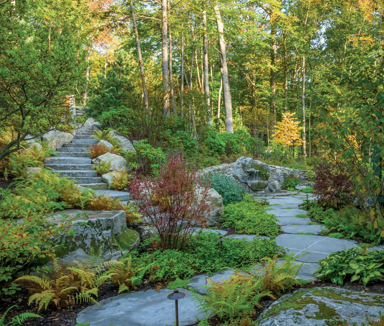 THEY SAY SEVEN IS A LUCKY NUMBER, and that is certainly true for Dennis Ciotti and Nancy Larocque, as it took that many years to complete the stunning gardens at their Dover home. The undertaking was the culmination of a long-held dream of Ciotti’s. As a little boy, he walked by this estate on his way to school. One day, the door opened and he got a peek of the grandeur inside. The owner, Mrs. Brown, stood in the entrance. Ciotti called out, “I’m going to own this house one day!” “Is that so?” the elderly woman said with a laugh.