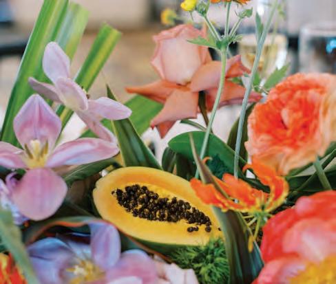 Artful fruits and vegetables like berries and peppers have made their way off the plate and onto the table. Epping-based Nectar & Vessel owner Naomi Izen combines heirloom flowers and garden treasures like these to create lush, cut-fromthe-garden design elements from statement centerpieces to farm fresh escort card seating displays that are a work of art all their own. naomiazriel.com, @nectarandvessel