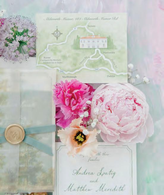 Amid the artistic flair and whimsy that dance through the pages of this Spring/Summer issue, you’ll find an abundance of ideas and fresh inspiration for the coming season from “Things We Love” on page 12 and a collection of Real New Hampshire Weddings starting on page 27 that confirms there’s no shortage of ways to throw the party you’ve been longing for. Our Q&A-titled department “Meet the Experts” awaits you on page 41, where local industry pros give their tips, tricks and thoughtful guidance on their own unique facet of the wedding planning process. If you’re looking for a chic café-inspired wedding with Parisian details, check out the “Springtime in Paris” styled shoot at The Greenery at McKenzie’s Farm on page 52. Don’t miss our brand-new Vendor List on page 63 for everything you need to know about planning your wedding from venue to DJ suggestions.
