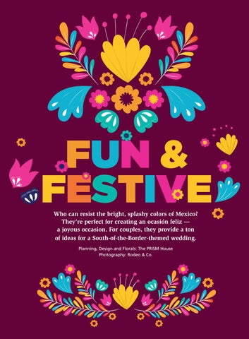 FUN & FESTIVE Who can resist the bright, splashy colors of Mexico? They’re perfect for creating an ocasión feliz — a joyous occasion. For couples, they provide a ton of ideas for a South-of-the-Border-themed wedding. Planning, Design and Florals: The PRISM House Photography: Rodeo & Co.
