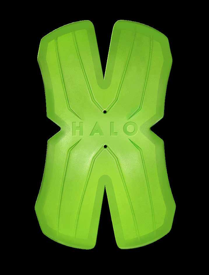> The X-HALO SHIELD™(Patent Pending) material changes at a molecular level during an impact, providing superior shock absorption and impact protection