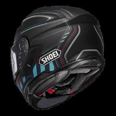 ▶ Unique to SHOEI, the forehead area of the EPS liner is the same thickness as the rest of the liner. Other manufacturers sacrifice the thickness of the EPS to accommodate an internal visor – this results in a huge compromise to your safety. SHOEI maintains the integrity of the EPS liner by manufacturing it in full thickness, for your complete protection