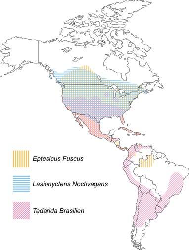 (Left)Tadarida Brasiliensis; (below from top) Eptesicus fuscus; and Lasionycteris noctivagans