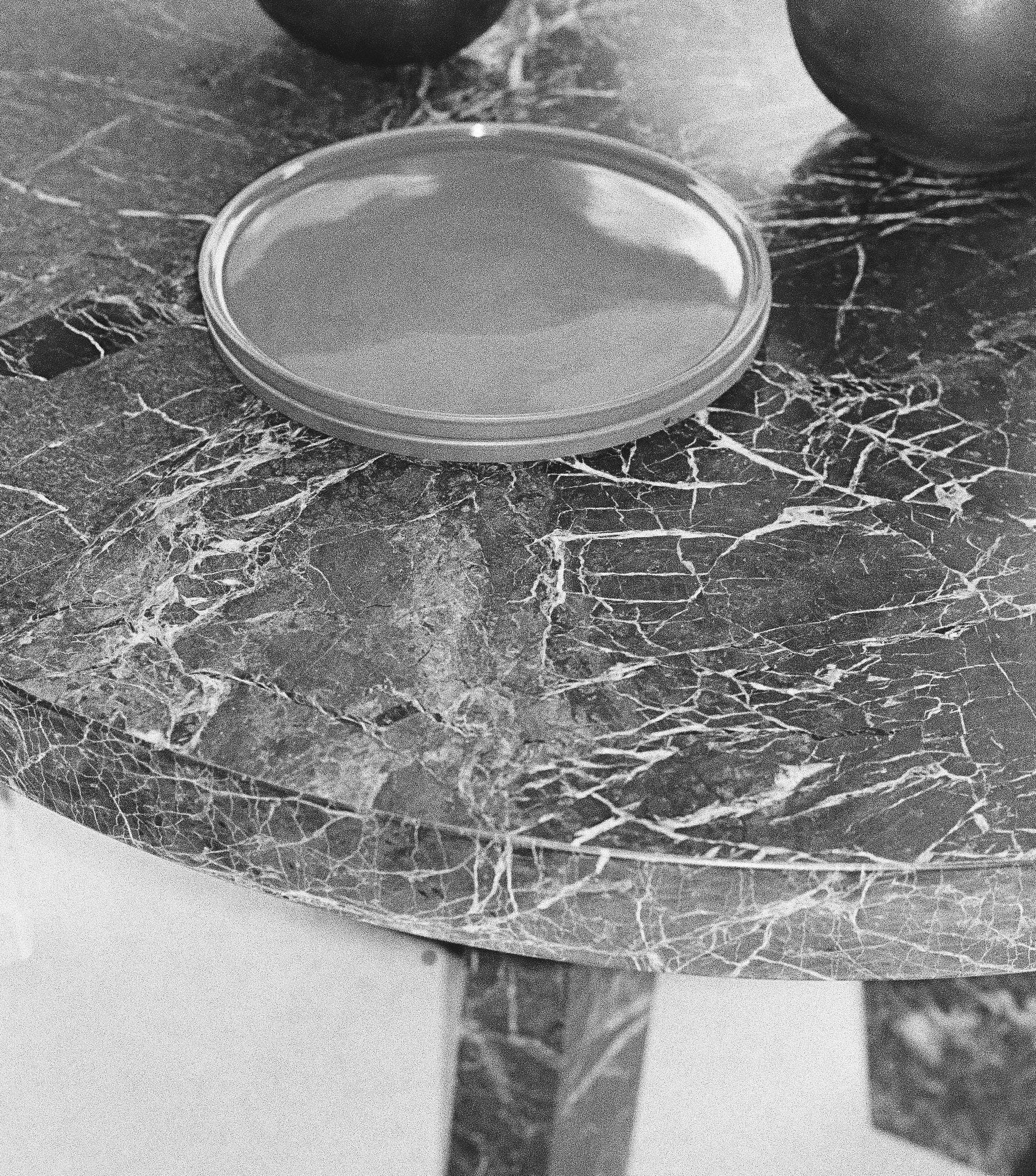 THIS PAGE Artie Armchair - Charcoal Velvet, Monument Round Coffee TableCarrara White Marble