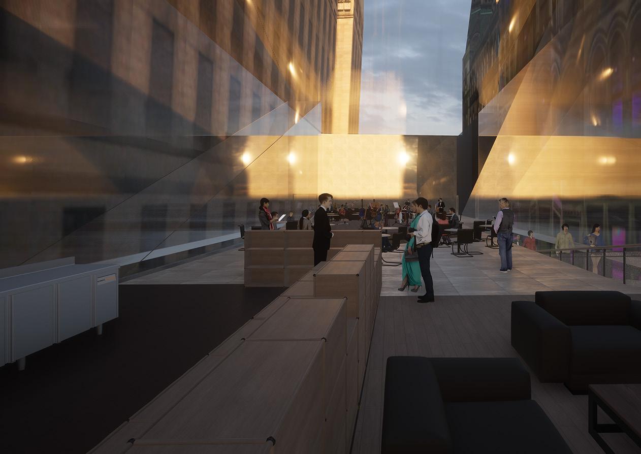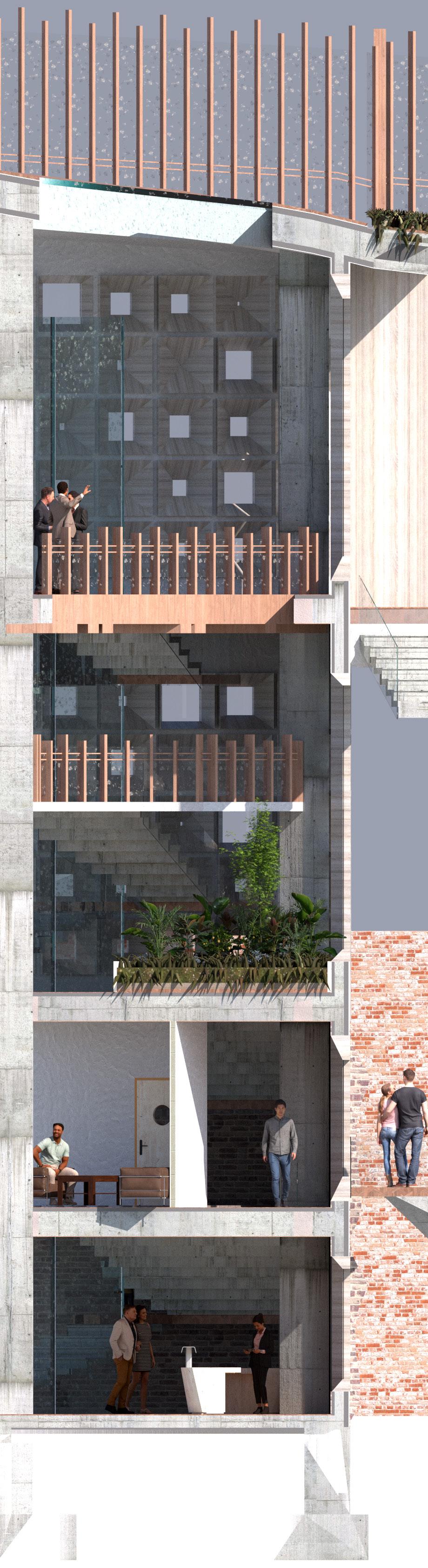 • Glass walls ensuring a new appreciation for the Town Hall is allowed.