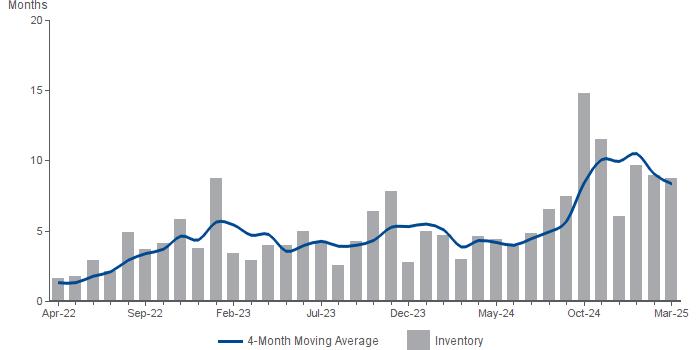Months Supply of Inventory | Properties for sale divided by number of properties sold.