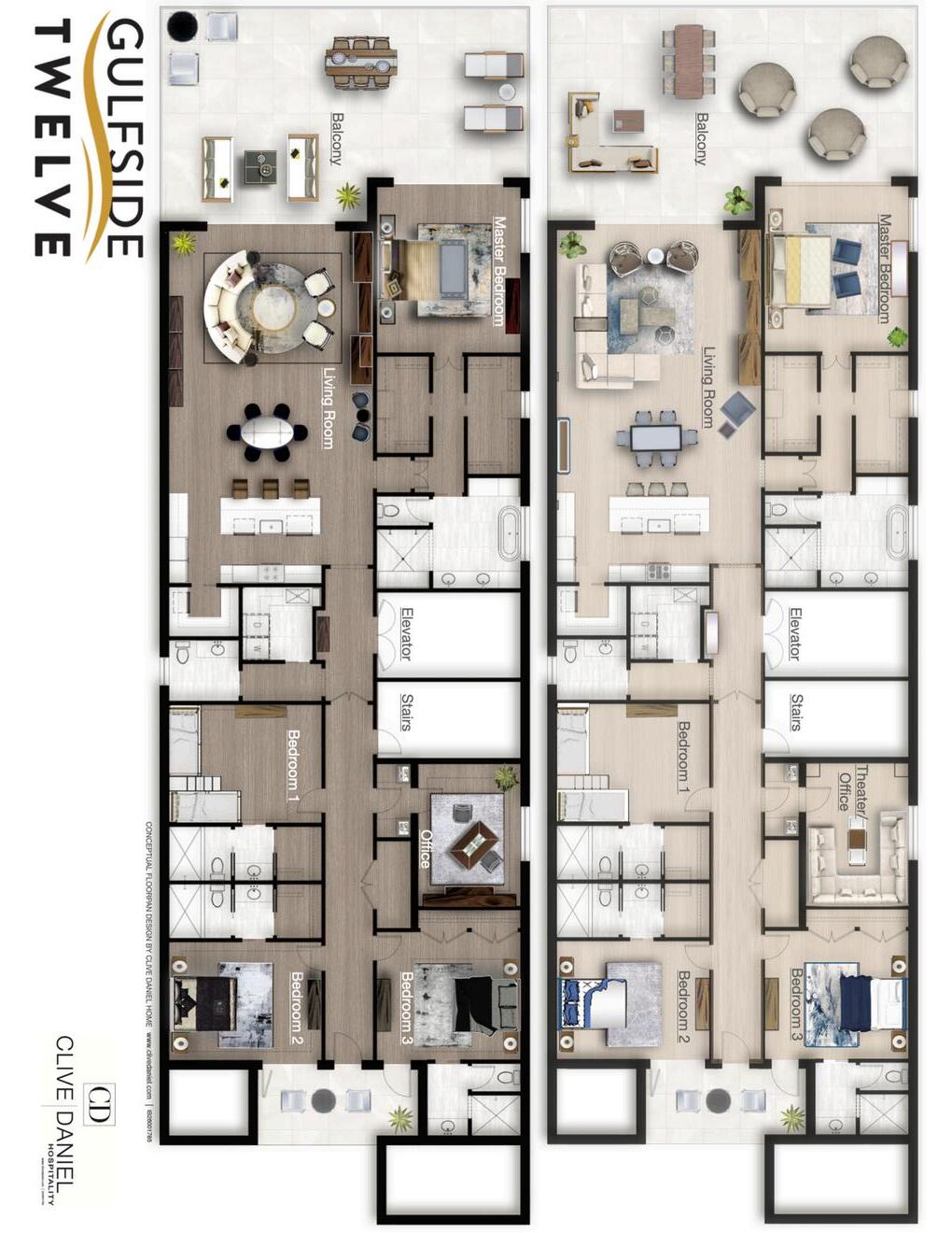 A creation of the Dublin Investment Group, Gulfside Twelve is a luxury living masterpiece. Spanning four levels of exquisite design, each customizable residence embraces sophistication and elegance. This development stands as a symbol of luxury living, where meticulous attention to detail and quality craftsmanship meet award-winning expertise.