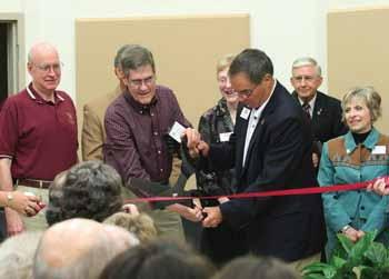 Dr. Russell and Board of Trustee Chairman Holland Evans ’66 cut the ribbon at the dedication of the newly renovated Bynum Band Hall during the Homecoming Festivities. Dr. Ralph Turner ’74 & ’76 visits with Rodney Brown ’64 and Byron Calcote ’64 at the Austin Area Alumni Gathering on January 31, 2009.