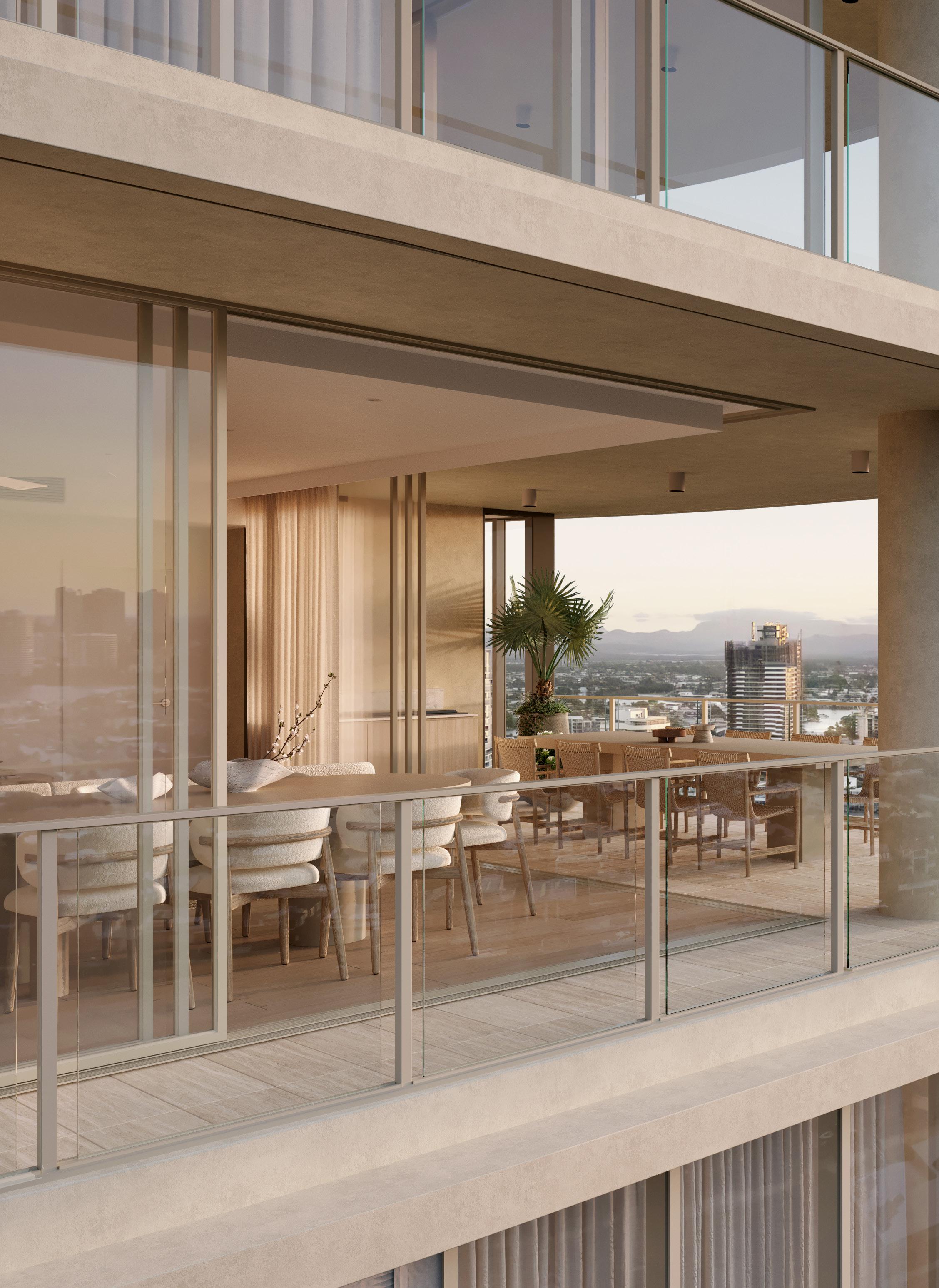 Expansive interiors transition effortlessly onto generous balconies, where flush thresholds create a continuous, open flow.