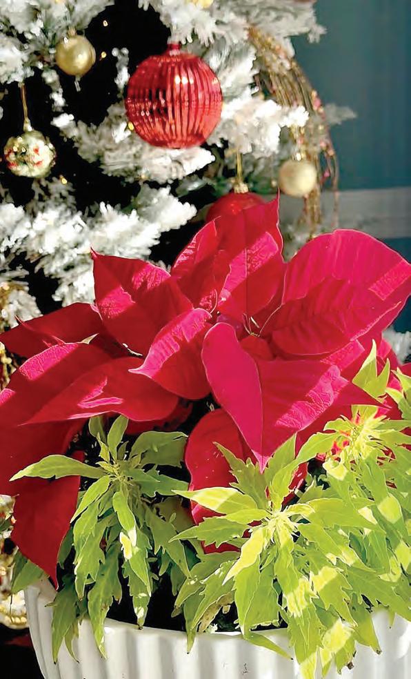 ABOVE: The Garden Guy created his own Christmas Combo with red poinsettia and ColorBlaze Mini Me Chartreuse