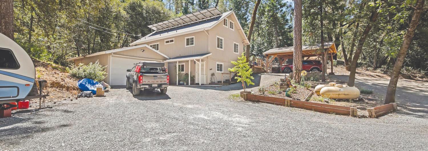 Beautifully updated single-story home, where comfort meets elegance. Inside, you’ll nd an open-concept layout with soaring vaulted ceilings and a dramatic wall of oor-to-ceiling windows that ood the space with natural light and frame panoramic views of Marchini Ranch and the rolling Placerville hills. The gourmet kitchen features a spacious center island and brand-new stainless steel appliances perfect for everyday living and effortless entertaining. The home includes a private In-Law Quarters offering 793 sq ft of studio-style living, complete with handicap accessibility and its own breathtaking views ideal for guests, extended family, or a private retreat. Step outside to 10+ acres of usable land, approved for large animals and ideal for horses or livestock. A circular re road provides defensible space and peace of mind. Relax on the covered back deck while soaking in stunning sunsets, or explore the possibilities of the workshop below the home, complete with a roll-up metal door for storage, hobbies, or a home business. Tucked away in peaceful seclusion yet just minutes from Gold Hill Wineries, the South Fork of the American River, hiking trails, and all the beauty El Dorado County has to offer.