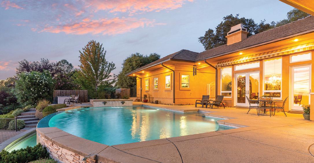 Springs, this spectacular estate o ers jaw-dropping, uninterrupted 120-degree panoramic including Downtown Sacramento, Mt. Diablo, California Coastal Range & beyond. nity-edge pool w/ a swim up bar, 8-person spa, outdoor kitchen, and multiple entertaining positioned to capture glorious sunsets! Set on 5+ usable acres, ideal for vineyards, animals, single-story 3,650 sq home was designed to frame the views from every angle. Inside, enjoy including a luxurious spa-like primary suite, a home gym (or optional 4th bedroom), breakfast area, and an open-concept kitchen that ows into a family room with a full bar, forever views. Additional highlights include a 33x22 deep garage, a lighted koi pond, dry 39-panel owned solar, two dual-fuel generators, Boston Acoustic whole house sound, remote-controlled awnings, water leak detector, newer appliances, raised garden beds, cient drip irrigation systems and more. is is a true entertainer’s dream above the nothing else will compare!