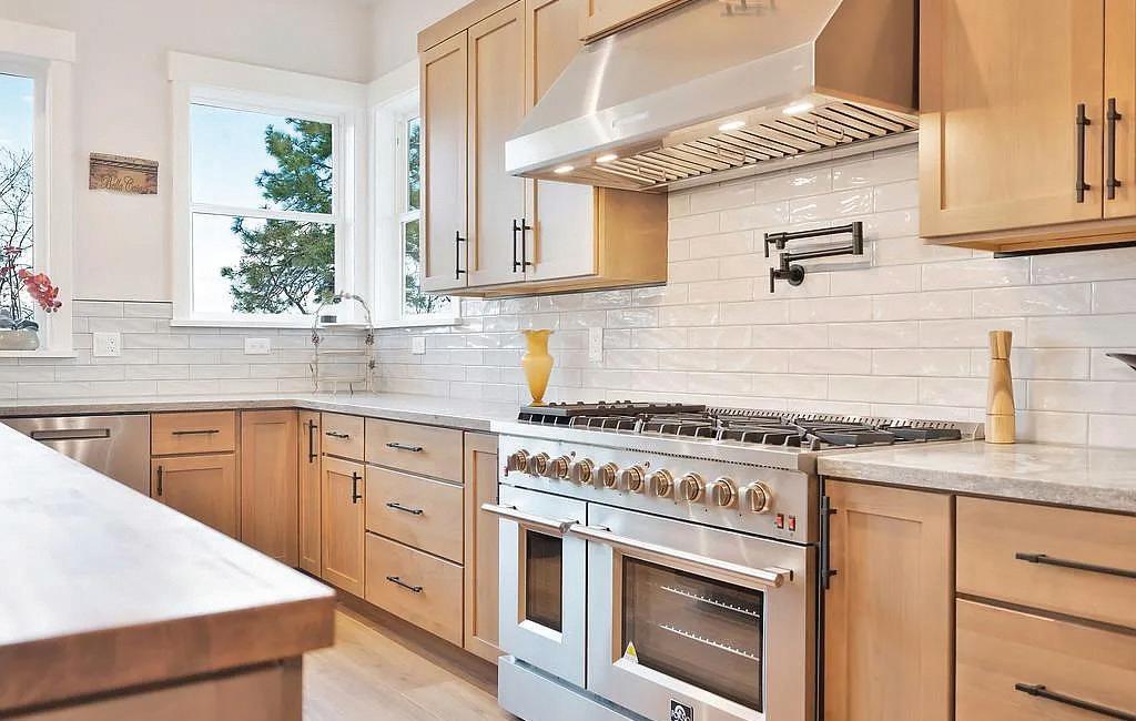 Huge kitchen! Eight burner gas range, double oven, a built-in oversized refrigerator, two dishwashers, a very large butcher block island, a wet bar with a wine frig and a pantry to die for. Vaulted ceilings, and a six foot propane fireplace. The master Bedroom opens to the valley view and deck. The master bath w/free-standing slipper style soaking tub and a enormous shower. The double doors to the master closet reveals a large closet .Tile roof w/ solar.