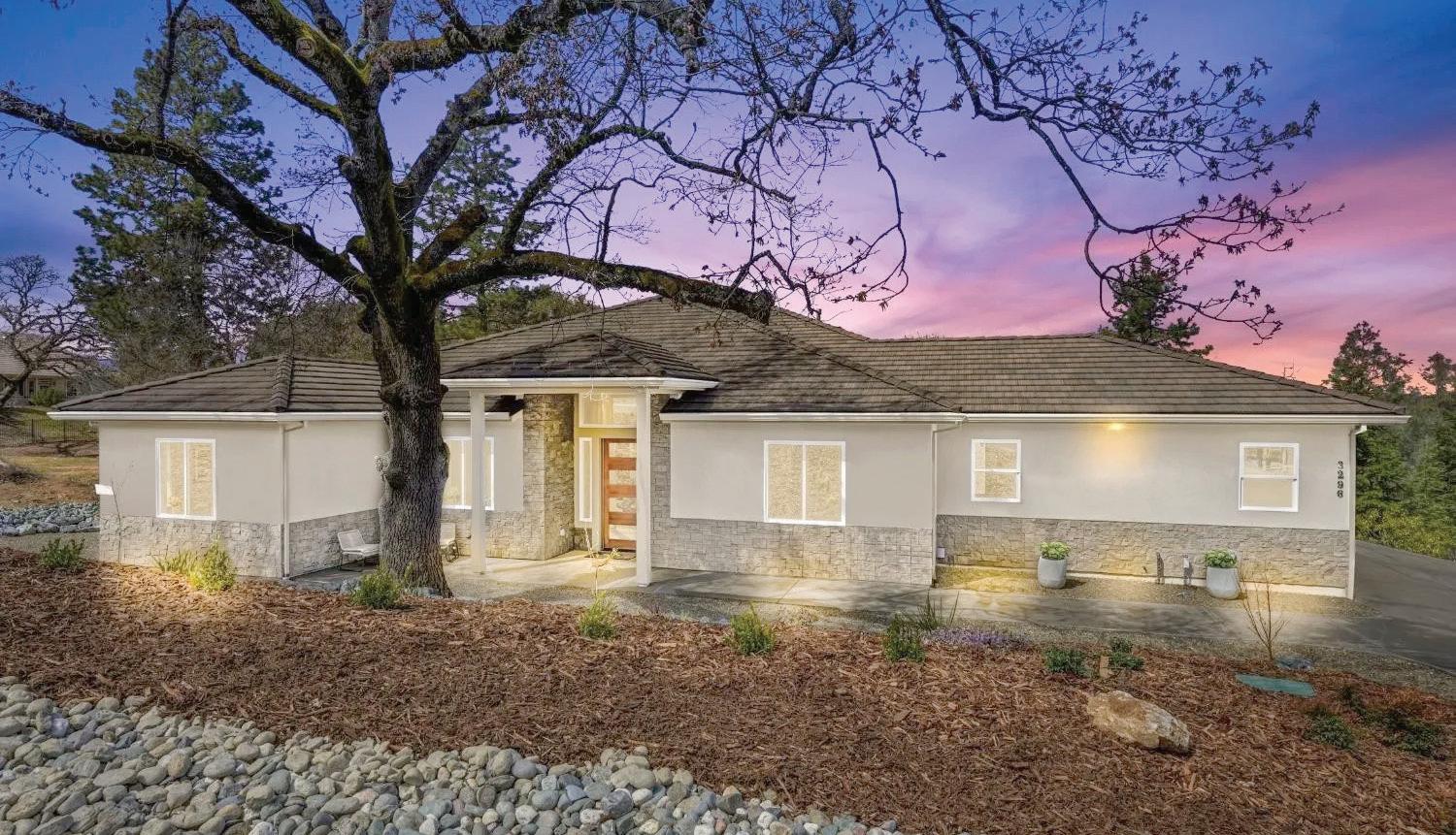 GORGEOUS SINGLE STORY! 3 bd 2 bath home with an attached 2 car garage on 1.9 treed acres. This 1327 sq. ft home features newer ooring throughout the kitchen, living room, hallway and bedrooms. Freshly painted interior. Central Heat and Air. Spacious kitchen offers concrete counter tops, w/stainless steel appliances, built in microwave, pantry closet. Spacious dining nook plus a formal dining area. Living room has a woodstove with access to the back deck for further enjoyment. Large master bedroom has sliding door that leads to the back deck. 30 amp plug switch for a generator(generator not included). Close to Sly Park Reservoir & Holiday Market.