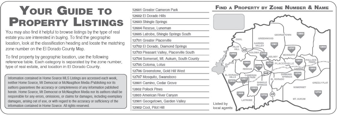 All real estate advertising in this newspaper is subject to the federal Fair Housing Act which makes it illegal to advertise “any preference, limitation or discrimination based on race, color, religion, sex, physical handicap, familial status or national origin, or an intention to make any such preferences, limitation or discrimination.” California also extends protection based on age and marital status. The Mountain Democrat makes every effort to comply with these federal and state regulations. We ask your assistance in maintaining an acceptable standard of advertising. While they may seem inconvenient at times, these laws are written to protect you, our readers and advertisers, as well as ourselves. This newspaper will not knowingly accept any advertising for real estate which is in violation of the law. Our readers are hereby informed that all dwellings advertised in this paper are available on an equal opportunity basis. For further information, you can call the Dept. of Fair Employment & Housing at (916) 445-9918 or the State Dept. of Consumer Affairs at (800) 344-9940.Note: Rental ads that contain the phrase “Single Occupancy” refer only to the physical characteristics of the dwelling and are not intended to state a preference of either marital or familial status. Equal Opportunity Law
