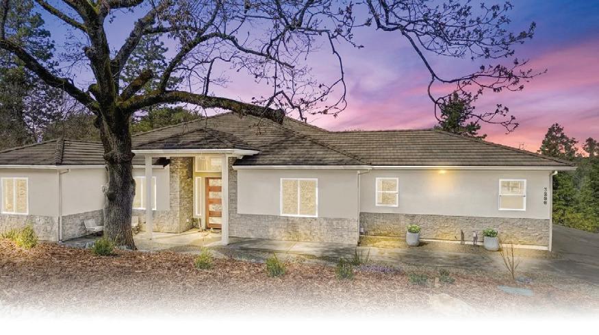 Step into re ned country living in this beautifully updated single-story home, where comfort meets elegance. Open-concept layout with soaring vaulted ceilings and a dramatic wall of oor-to-ceiling windows that ood the space with natural light and frame panoramic views of Marchini Ranch and the rolling Placerville hills. Gourmet kitchen features a spacious center island and brand-new stainless steel appliances. Private In-Law Quarters offering 793sf of studio-style living, complete with handicap accessibility. 10+ acres of usable land, approved for large animals. A circular re road provides defensible space. Explore the possibilities of the workshop below the home, complete with a roll-up metal door for storage, hobbies, or a home business, pool, rec room w/ Fireplace, Gym/exercise room, spa/ hot-tub, BBQ and trails C21 • HELEN RIVARD 530-409-2687 • ASHLEY CAMPBELL 530-391-4058
