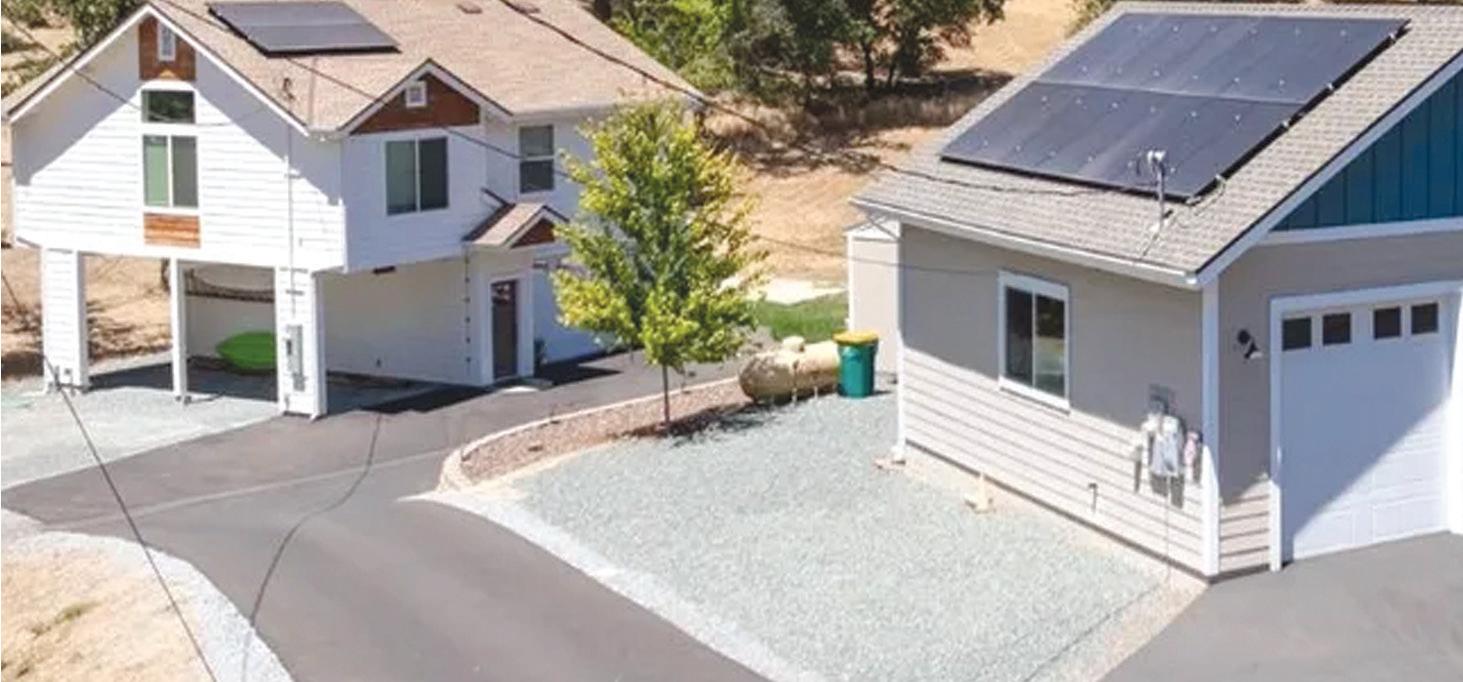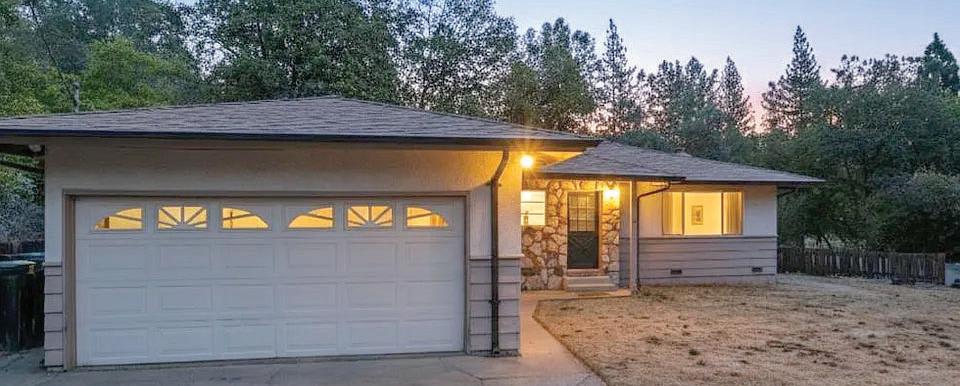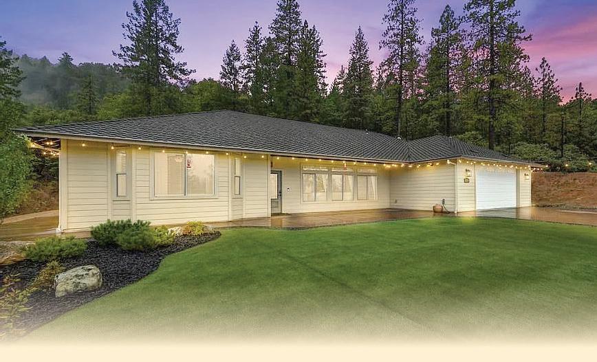 home in Placerville’s desirable Sleepy Hollow Ct. Set on nearly an acre, this elegant beds, 2 baths, cathedral ceilings, and oversized windows that frame views of a seasonal chef’s kitchen impresses with quartz counters, custom white cabinetry with stunning blue stainless appliances, wine refrigerator and a large pantry. e private primary suite features bath with soaking tub and oversized shower. Energy-e cient with approx. 5kW owned Generac generator! ere’s RV parking with 50 amp power & sewer hookup as well. e garage includes 9’x9’ doors for taller vehicles. Enjoy outdoor living on the covered patio or deck. e detached ADU o ers exceptional quality with 2 beds, 1.5 baths, designer nishes, solar, mini-splits, an oversized 2-car garage, carport, and RV setup. With a total of 3333 SF living space, that is only $330 a square foot! Minutes to town, yet feels like private retreat.