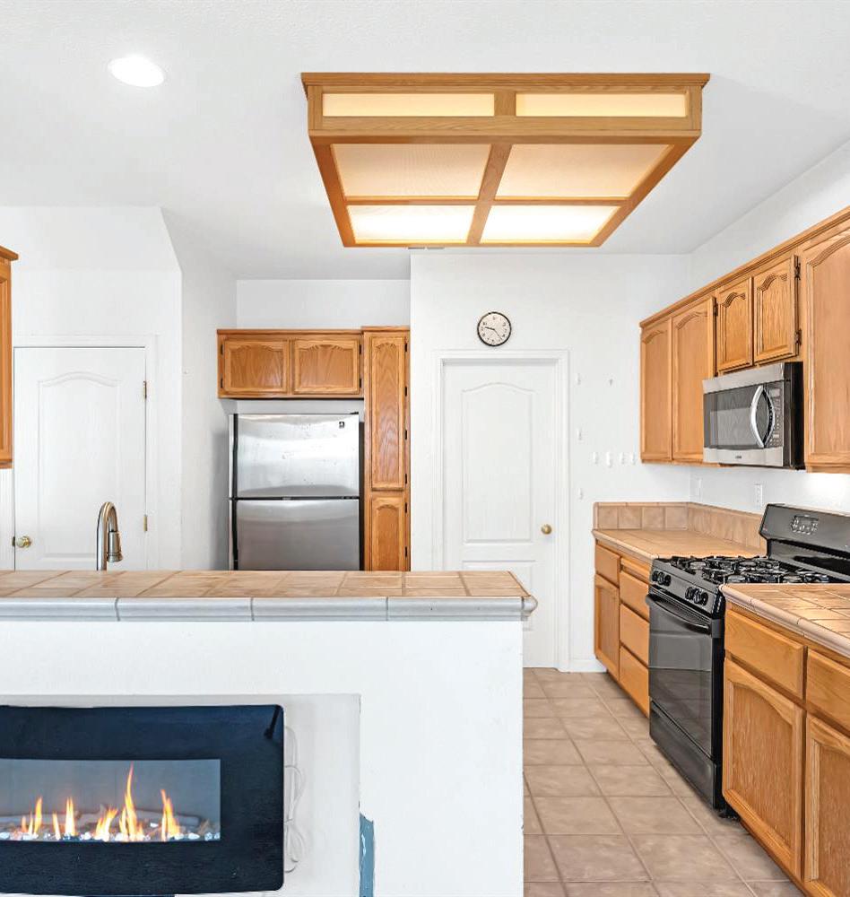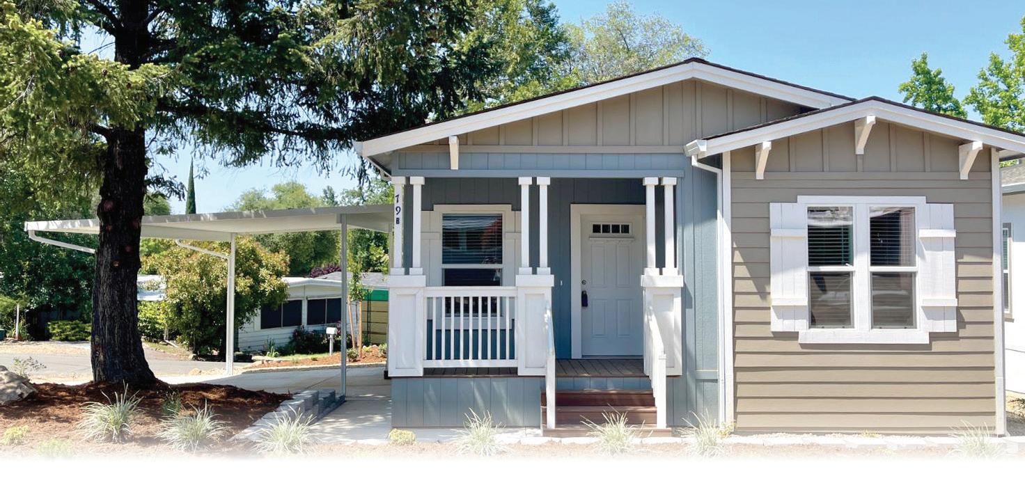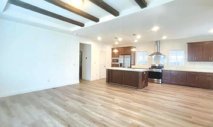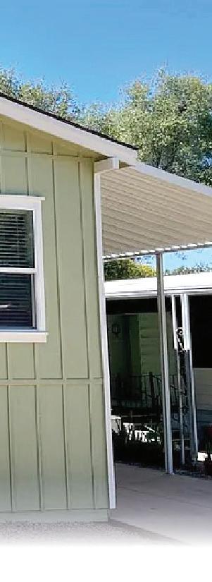 open oor plan with a generous gourmet kitchen, a cozy covered front deck, durable wood like ooring and more. This home is situated in a well established senior community near shopping, dining, medical of ces and easy freeway access.