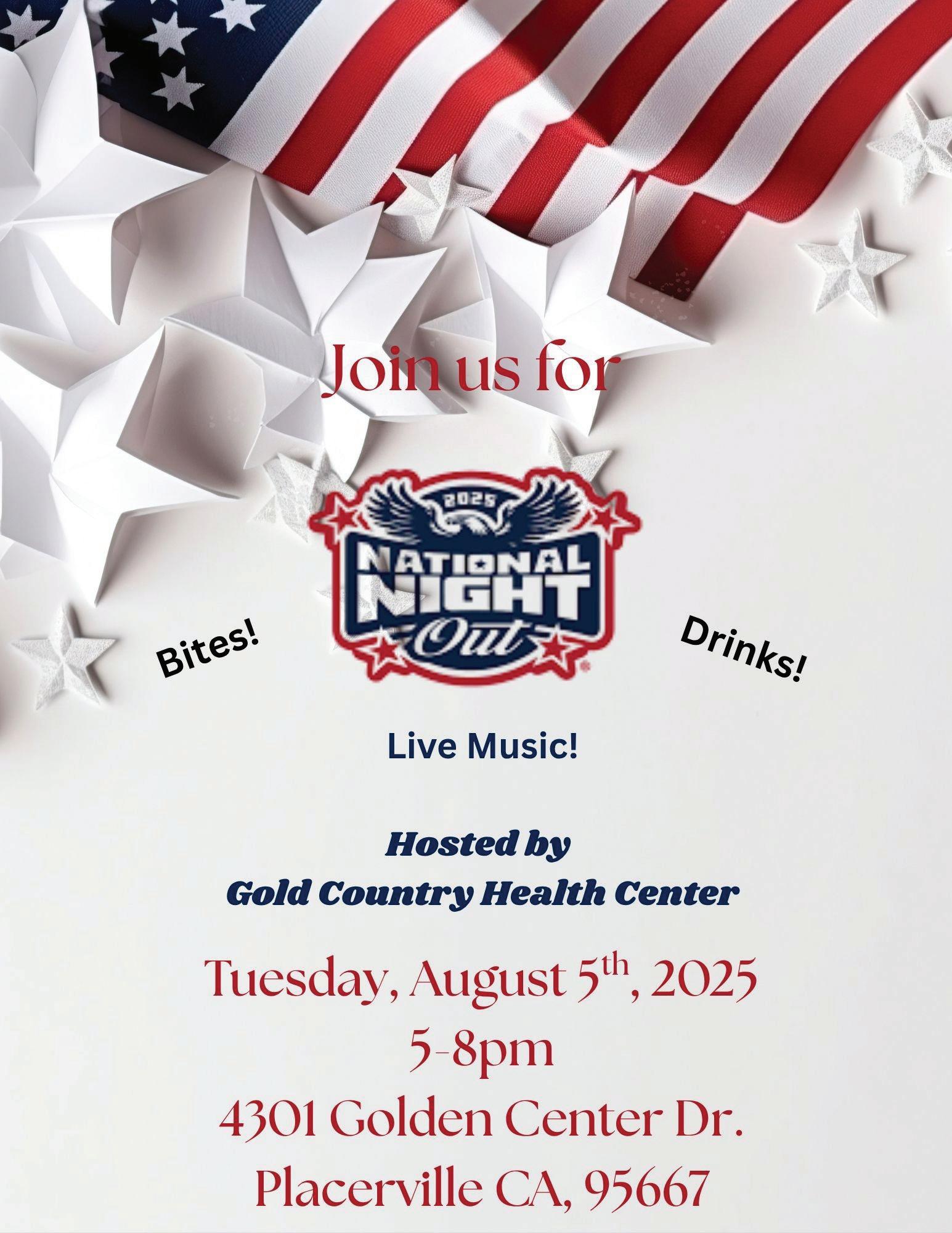 El Dorado Hills Community Services District will host National Night Out at Community Park from 6-8 p.m. For more information visit eldoradohillscsd.org.