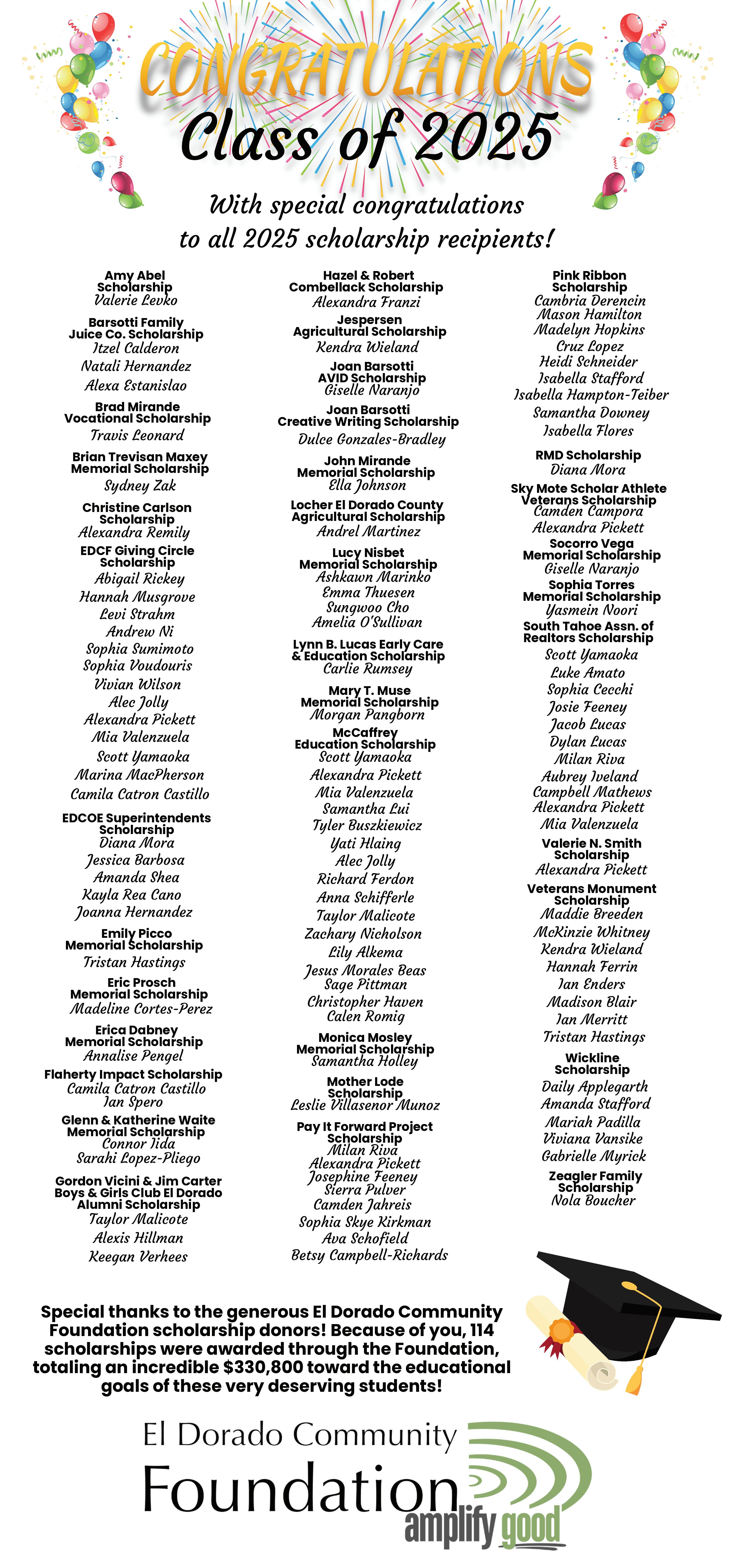 Mimi Escabar Special Sections Editor 530-344-5070 / mescabar@mtdemocrat.net Andrew Vonderschmitt Staff writer 530-344-5058 / andrewv@mtdemocrat.net