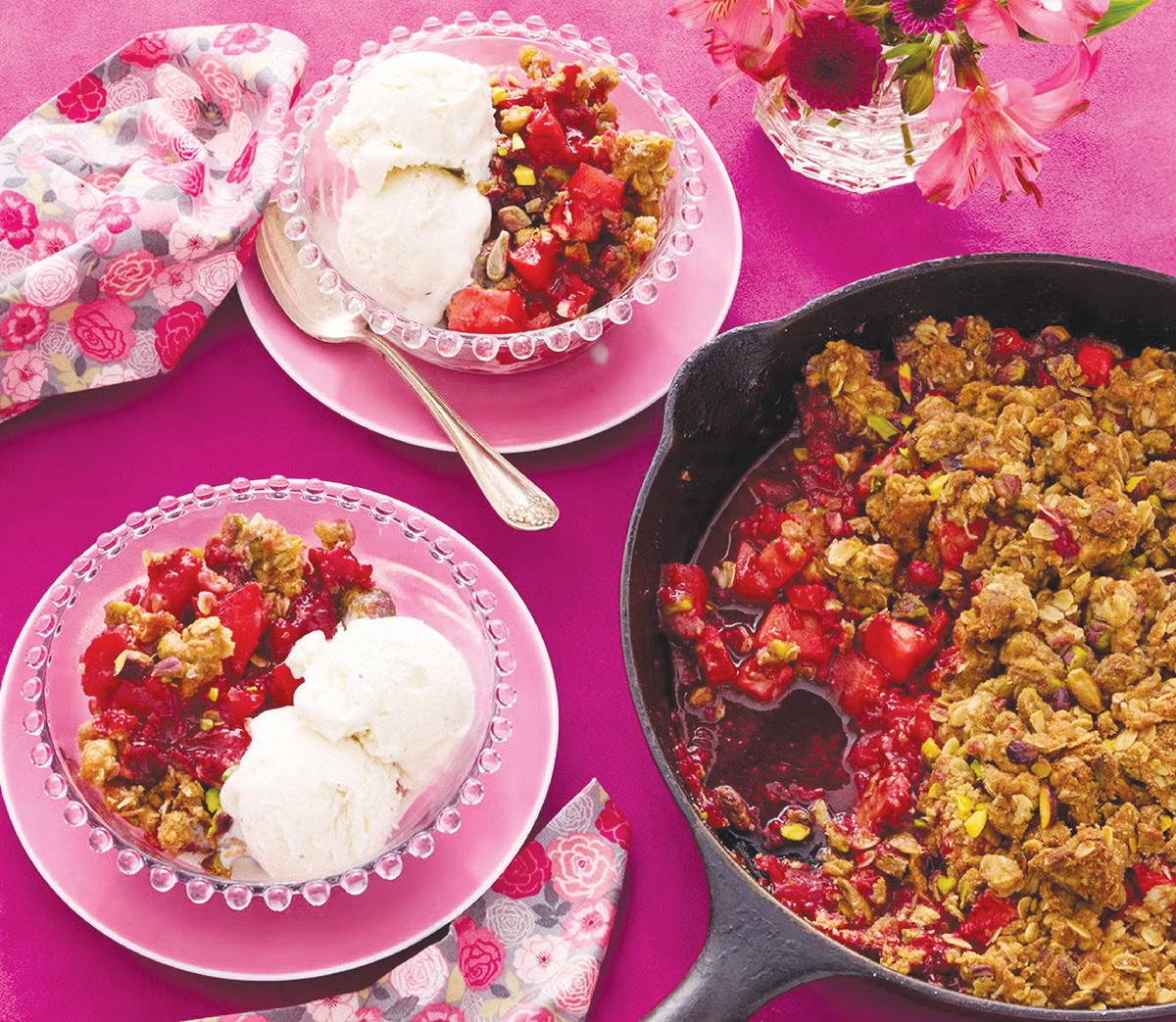 fahrenheit and line a rimmed baking sheet with foil. In a nineor ten-inch cast-iron skillet, melt two tablespoons of the butter over medium heat, then remove from the heat. In a large bowl, toss together the apples, raspberries, granulated sugar, cornstarch, vanilla and a quarter teaspoon of salt. Scrape the apple mixture and juices into the skillet and spread into an even layer.