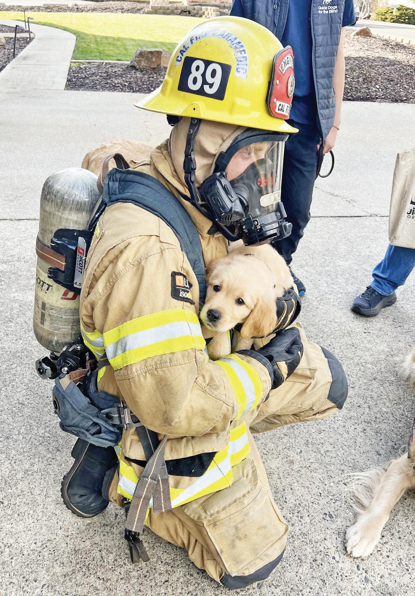 Cal Fire Amador-El Dorado Unit firefighters showed some love to Guide Dogs for the Blind’s pups in training on Valentine’s Day. Dogs and their handlers visited Cameron Park’s Station 89, where first responders helped the puppies build confidence in new environments by walking on metal stairs at the training tower, experiencing fire engine lights and sirens and meeting a firefighter in personal protective equipment and self-contained breathing apparatus. This training helps them stay calm and focused if their future handler ever faces an emergency requiring a fire department response.
